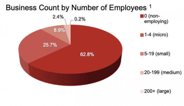 Moreover, as of 30 June 2019, businesses with fewer than 200 employees accounted for 66 per cent of employment.2