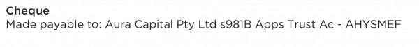 Made payable to: Aura Capital Pty Ltd